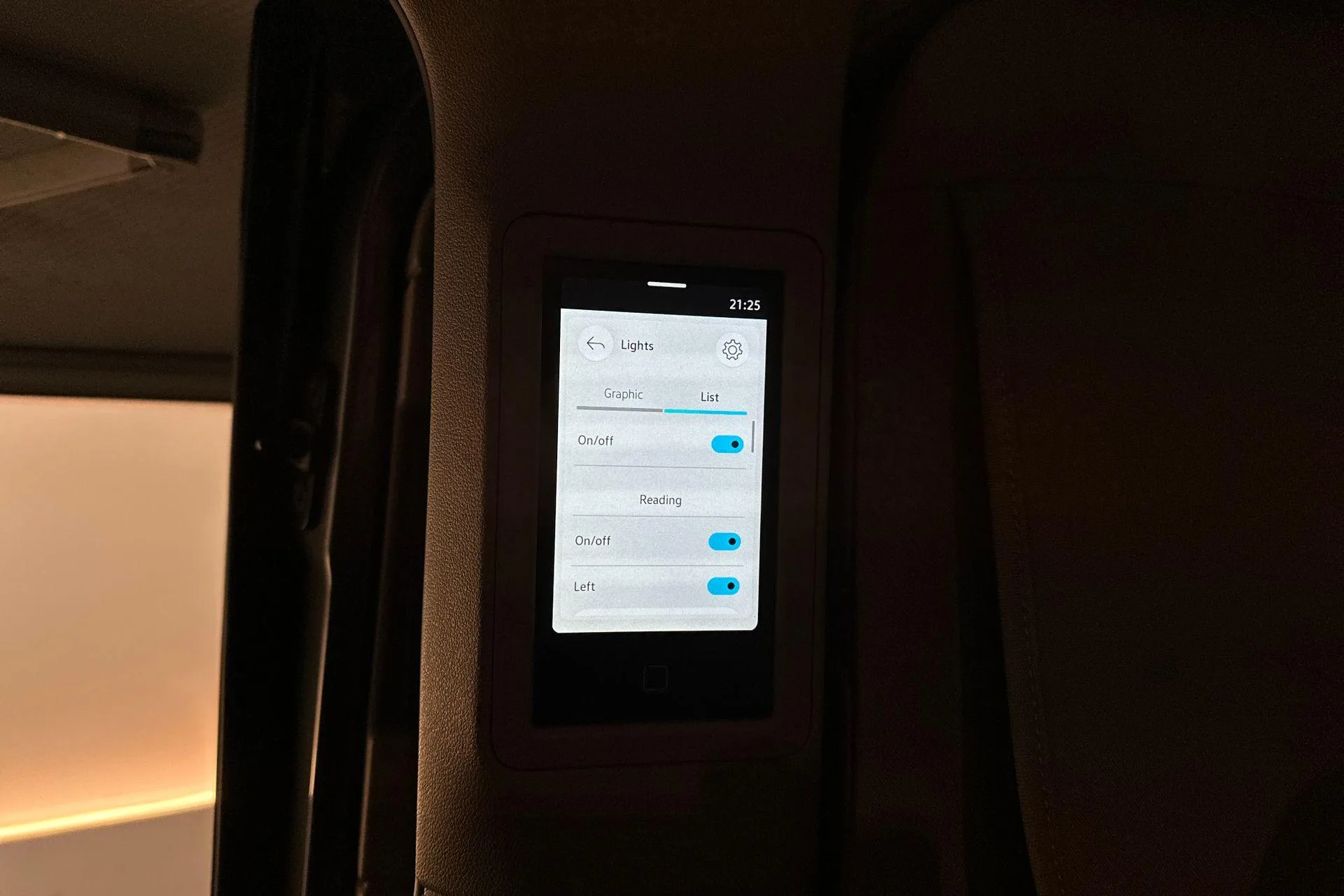 - Voorstoelen met armleuningen, elektrische lendensteunen en klaptafeltjes
